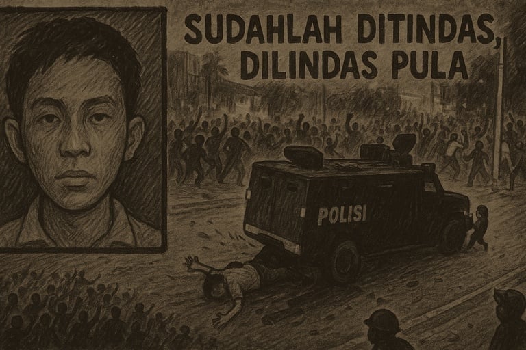 Kerusuhan yang berakar dari tindakan pembubaran paksa justru mempertegas kegagalan sistem dalam menanggapi aspirasi publik secara damai. Brimob, sebagai pasukan elit kepolisian, tampil bagaikan tentara yang malah menindas rakyatnya sendiri. Tragisnya, rantis Brimob melaju tanpa kompromi, sengaja menggilas Affan yang berlari sendirian di tengah kerumunan. Insiden brutal ini bukan kali pertama menambah daftar panjang kekerasan aparat di ruang publik—setelah peristiwa menembak di depan Bawaslu hingga tragedi Kanjuruhan.